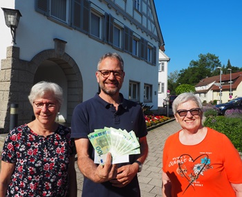 Da hat Uhingens Bürgermeister Matthias Wittlinger nicht schlecht gestaunt,als Margarete Wais und Doris Oster vom „Café Fair“-Team der Lokalen Agenda 21 kürzlich bei ihm im Rathaus standen. Denn die beiden Power-Frauen hatten ein willkommenes Präsent mitgebracht: 10 grüne 100-Euro-Scheine als Spende zugunsten der Bürgerstiftung Uhingen,um damit den vom Starkregen und Hochwasser Anfang Juni in Uhingen und Holzhausen geschädigten Menschen helfen zu können.