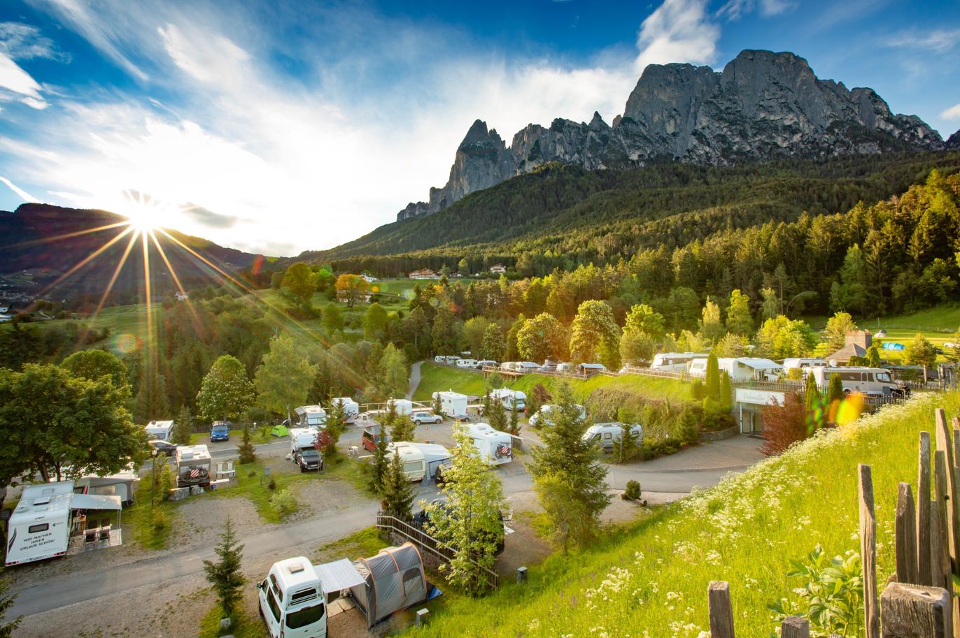 Foto: Camping Seiser Alm in Südtirol Campingurlauber sind glücklicher. Als die häufigsten Gründe dafür werden Minimalismus,die Nähe zur Natur und das hohe Maß an Individualität und Flexibilität genannt.