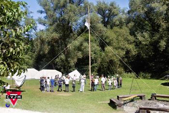 Foto (CVJM Faurndau): Morgenandacht beim Zeltlager des CVJM Faurndau im Schwäbischen Wald