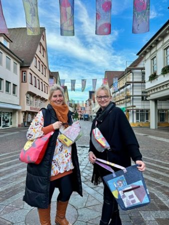 Mit viel Kreativität und handwerklichem Geschick haben die beiden Kunsthandwerkerinnen,Sybille Lenz von Bille Besonders aus Geislingen und Nicole Wabersich von Snickys aus Treffelhausen,die verwitterten,aber noch gut erhaltenen Stoffbahnen in wahre Unikate verwandelt. Das Ergebnis: vier verschiedene Taschendesigns,die jeweils die Geschichten und Farben unserer Stadt weitertragen.