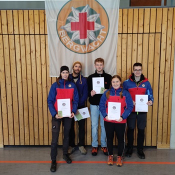 Fotos (DRK Bergwacht Württemberg/Albert Brüning): Aus der Ortsebene Göppingen nahmen vier Prüflinge teil: Marvin Kümmel,Pia Seehofer,Andreas Tastl und Luca Lay.