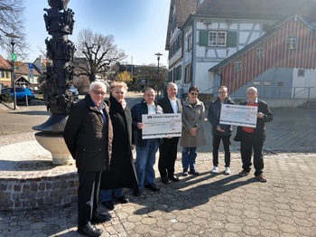 Foto von links: Heinz Westphalen,Anita Brucker,Karl Weckherlen,Bürgermeister Marc Kersting,Sabine Eisele,Alexander Winkler,Karl-Heinz Schneider
