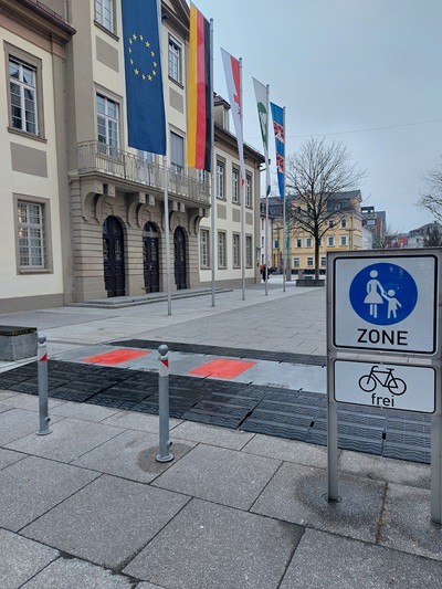 Foto: Das abgeklappte Sperrsystem vor dem Rathaus