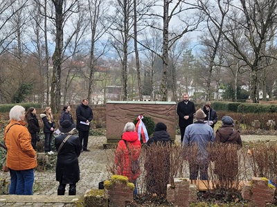 OB Maier legte einen Kranz am Mahnmal nieder und gedachte so der Opfer. In seinen abschließenden Worten dankte er allen Beteiligten für die würdevolle Gestaltung der Gedenkfeier. Er rief dazu auf,das Gedenken an die Vergangenheit als Auftrag für die Zukunft zu verstehen und sich gemeinsam für Demokratie,Toleranz und ein friedliches Miteinander einzusetzen.