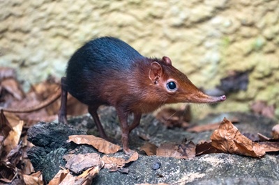 Wenn man an Tiere mit Rüssel denkt,die in der Wilhelma leben,kommen einem zunächst die Elefanten in den Sinn – und vielleicht die Tapire. Es geht aber noch eine ganze Nummer kleiner: Seit April 2024 ist ein Rotschulter-Rüsselhündchen im Zoologisch-Botanischen Garten Stuttgart zuhause. Im erst 2022 eingeweihten Haus für Kleinsäuger,Vögel und Insektivoren (KVI) teilt es sich ein Gehege mit den Afrikanischen Zwergfalken.
