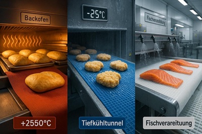 Diese Bänder bleiben auch bei schnellen Temperaturwechseln formstabil und funktionieren zuverlässig,egal ob beim Backen von Broten oder dem Tiefgefrieren von Lebensmitteln.