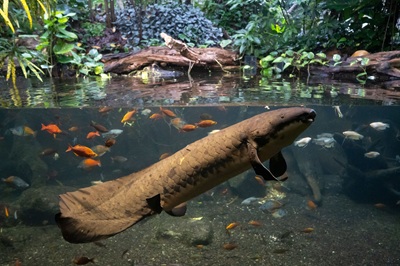 Foto: Der Australische Lungenfisch atmet nicht nur mit seinen Kiemen,sondern auch mit der Lunge.