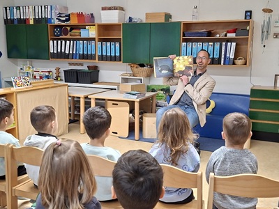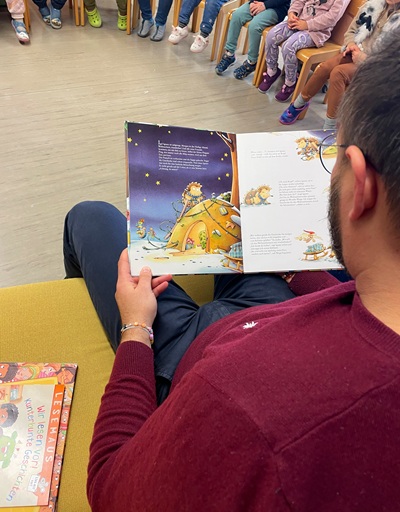Auch bei ihr fand sich ein Lesepate ein,der fast 30 Mädchen und Jungen zwischen 2 und 6 Jahren die Geschichte „Der Maulwurf und die Sterne“ vorgelesen hatte. Uwe Steinhart besucht schon seit einigen Jahren den Kindergarten Finkenstraße,um als Lesepate aktiv zu werden. Angefangen hatte er,weil sein Sohn den Kindergarten besucht hatte. Diese ist mittlerweile aber schon im Grundschulalter – die Tradition des Vorlesens ist aber geblieben.