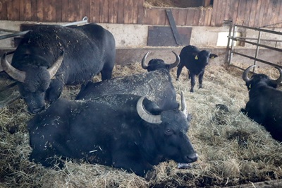 Die Büffel gehen ins Winterquartier in einem festen Stall,um ihre Gesundheit und das Wohlbefinden während der kalten Jahreszeit zu gewährleisten. Sie leben dort in einer geschützten Umgebung,in der sie Futter,Ruhe und Pflege erhalten.