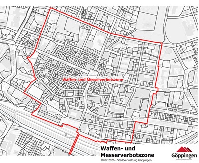 Göppingen reagiert auf die jüngsten Vorkommnisse mit Waffengewalt in der Stadt und führt im Bereich der Innenstadt eine Waffen- und Messerverbotszone ein. Das Verbot tritt ab Donnerstag,12. Februar 2026,in Kraft und ist bis zum 30. April 2027 jeweils von 16 bis 6 Uhr am Folgetag gültig.