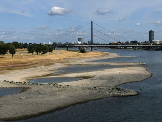 Niedrigwasser im Rhein bei Düsseldorf: Wetterdienst erwartet mehr Trockenheit insbesondere im Westen